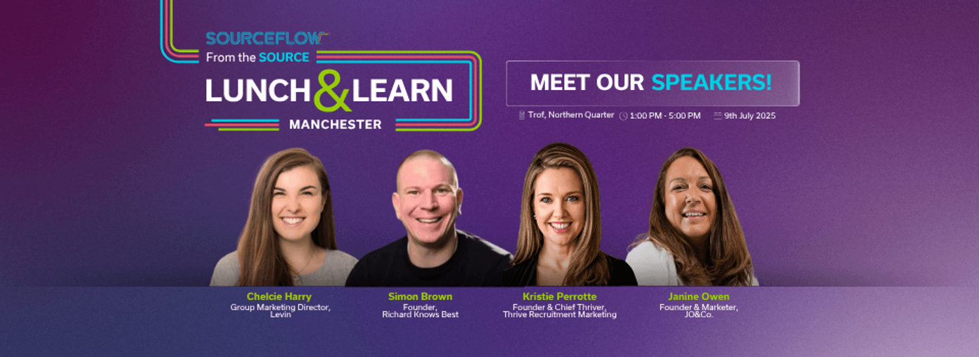 On the 9th of July, SourceFlow hosted an energetic and insightful Lunch & Learn event in Manchester, bringing together recruitment marketers, agency leaders, and operations pros from across the UK. The event focused on the evolution of recruitment marketing — and the bold strategies required to lead growth in today’s challenging market.