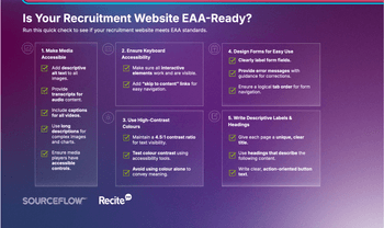 Download SourceFlow’s free guide to building an inclusive recruitment website that meets global accessibility standards and widens your talent pool.